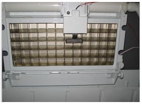 ![]() | 制冰机日常维护 使用注意事项 1、每月定期清洗分流管、水槽水垢异物 分流管用五六根棉花棒捆绑一起反复擦洗小洞眼保持洞眼畅通,水流分布均匀才能保证冰的饱满; 水槽用干净的湿布蘸中性洗涤剂清洗,勤洗才能保证水槽不泛黄,水泵不卡。 2、定期清洗散热器 直立式制冰机散热器在制冰机正面靠下方位置,卸下前门有百叶窗的地步两侧螺丝,看到鱼鳞状散热器;分体式风冷制冰机散热器在主机后面,拆下后背板,卸下清洗滤网并清洗鱼鳞状散热器。 3、定期检查进水流量大小 建议每月定期更换过滤器内的滤芯(如不定期更换滤芯会造成制冰器缺水红灯闪烁,机器自动停机) 4、冰块厚薄调节方法 打开制冰机主机面板或门板,冰盘正上方位置的底部有T字形的金属贴片的白色塑料件即为冰厚传感器-俗称冰厚探头。 专家建议冰厚探头的金属铁片与冰格之间的侧面间距在5-6毫米(MM)之间,顺时针方向调厚,逆时针方向调薄。 | ![]() |